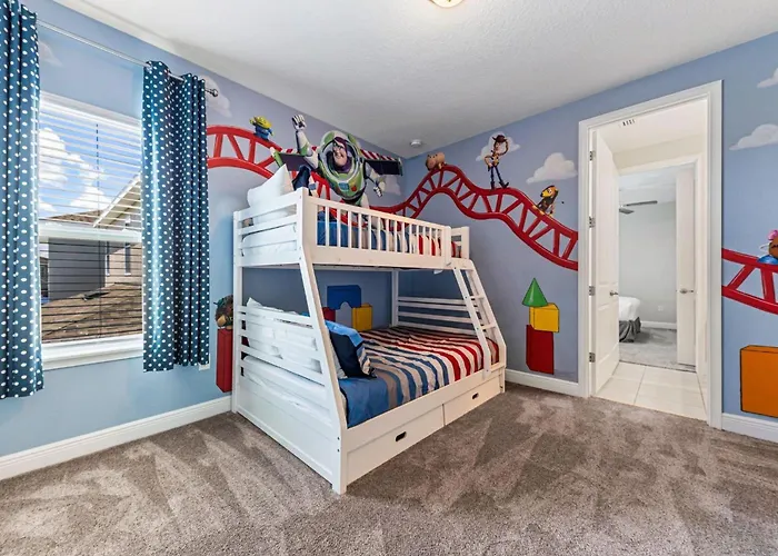 Cette villa de 6 pièces se trouve dans le quartier "Celebration", à une courte distance de lieux familiaux tels que le parc d'aventures Orlando Tree Trek. À environ 2 km de cette propriété d'Orlando, vous trouverez Watson Golf Course, ainsi que la Église catholique du Corpus Christi est dans une zone de 4 km. La villa Airy 6 Bdrm House With Private Pool In Encore propose aux amateurs de sport de découvrir le complexe sportif ESPN Wide World of Sports, situé à 15 minutes en voiture.